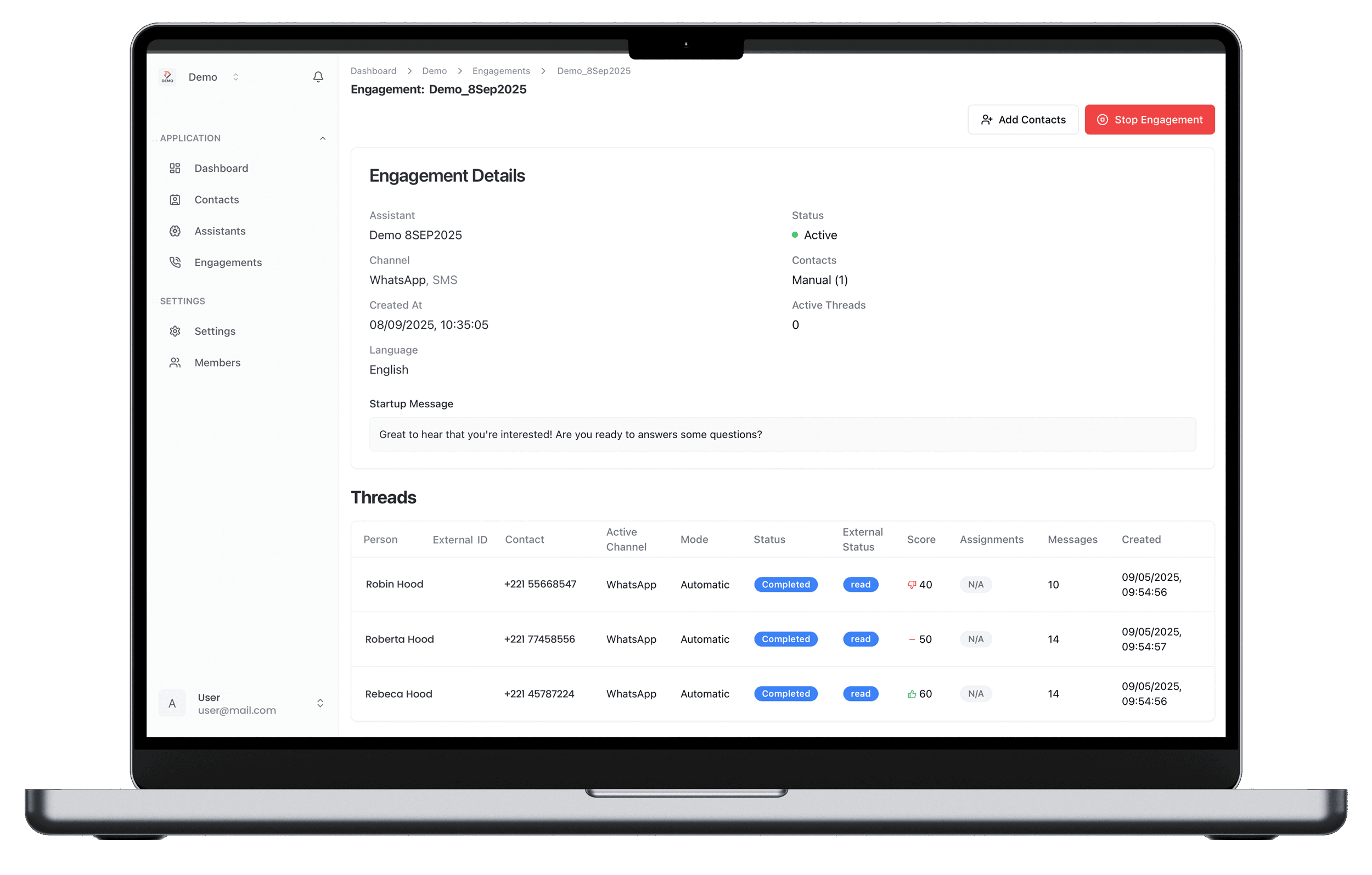- 2The assistant chats with candidates and collects their answers.