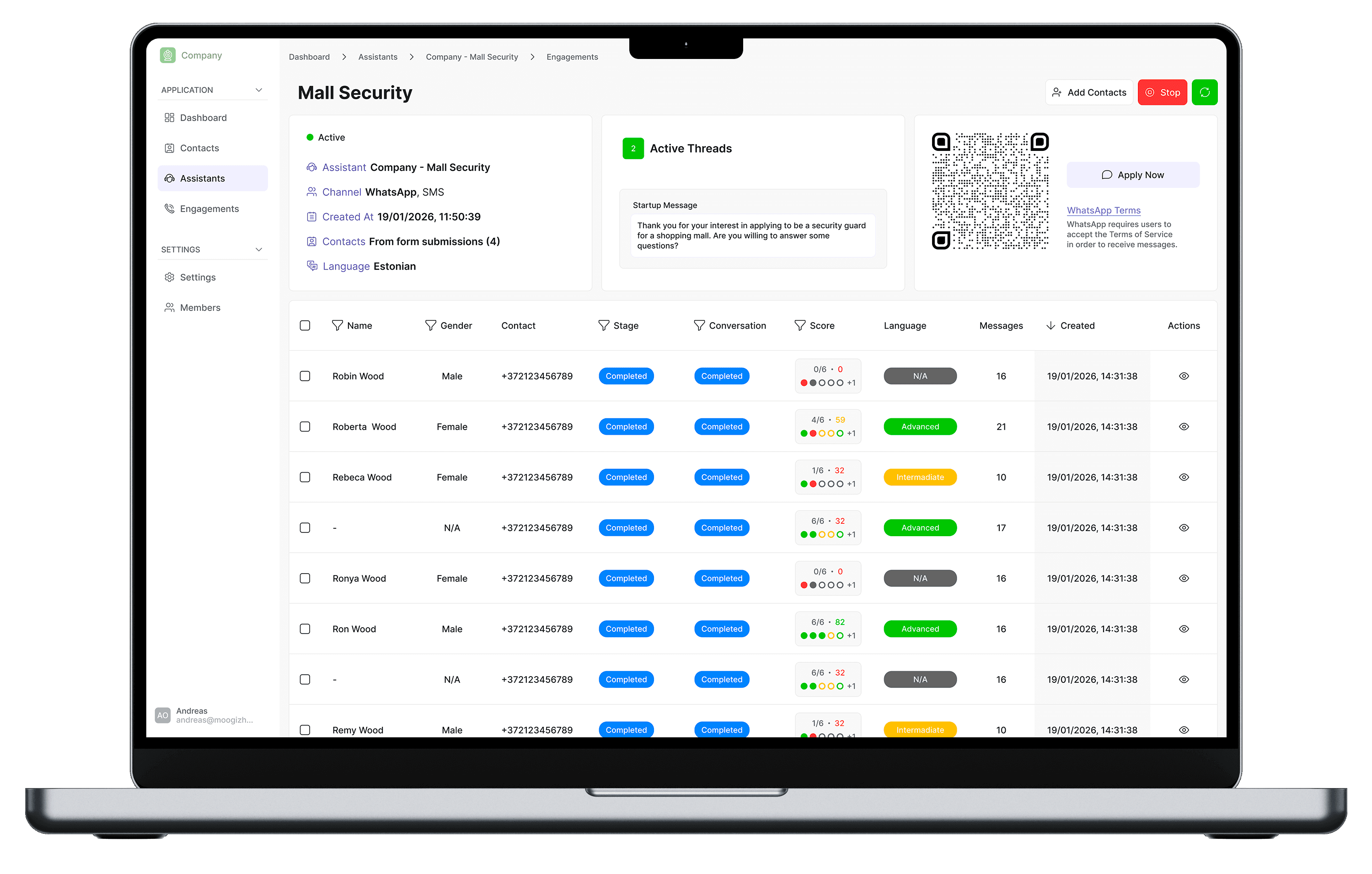 Talk to candidates on WhatsApp, SMS, and other channels — no forms needed.